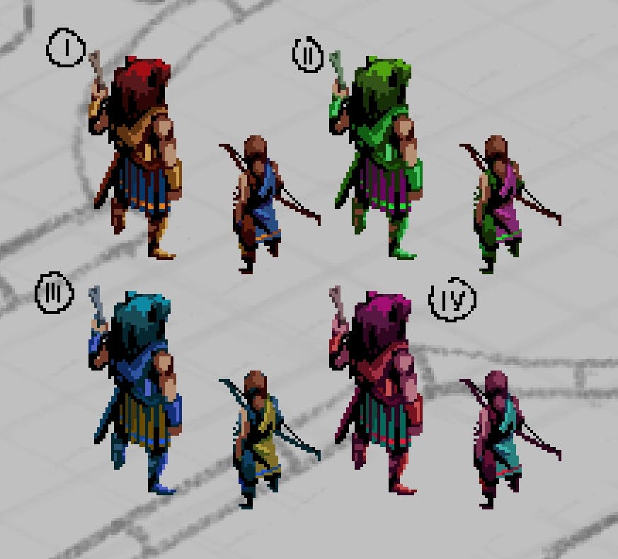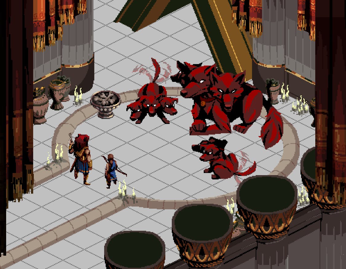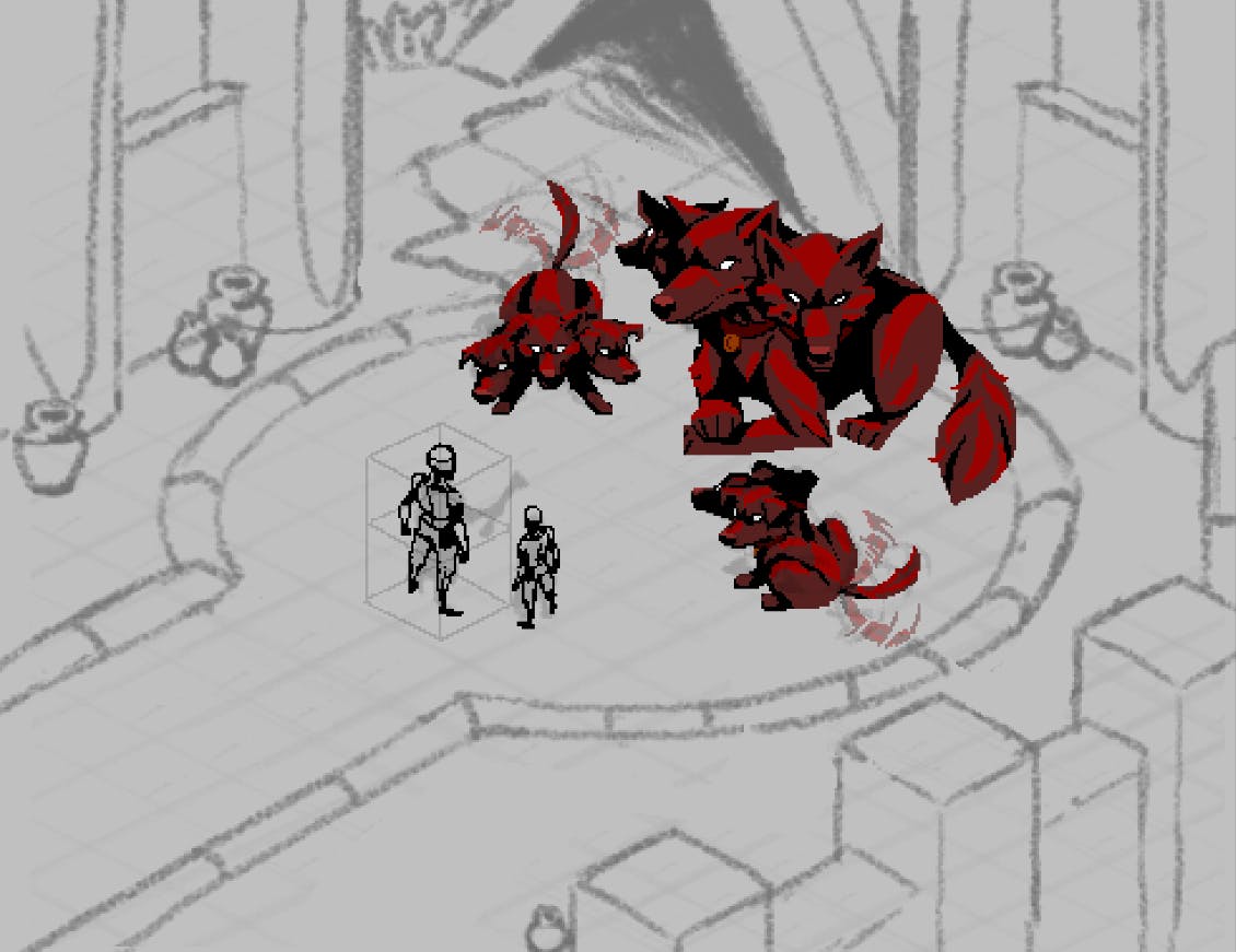 Then sprite representations of the characters, where we ended up going with the Nemean lion look.